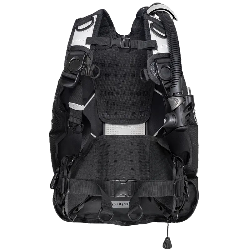 The Oceanic Photon Air Men’s BCD is a travel-ready back-inflation BCD built to keep you streamlined and well-trimmed underwater. It’s designed with light but strong materials to ensure a BC you can depend on. The Photon Air harness is constructed with 420D nylon mesh panels, so once you’re out of the water, it drains quickly and allows for efficient airflow to help it dry between dives. For those who love to tweak, the Photon Air modular frame allows you to easily attach add-ons, readjust straps as your diving evolves, or even add color kits for a personal touch. If you want a men's travel BCD that’s easy to transport, comfortable underwater, and aids your trim and positioning, the Oceanic Photon Air is a smart match. You get stable back-inflation control, ergonomic comfort, and a quick-dry harness designed to drain and dry faster. Customize it with Photon add-ons as your diving grows.